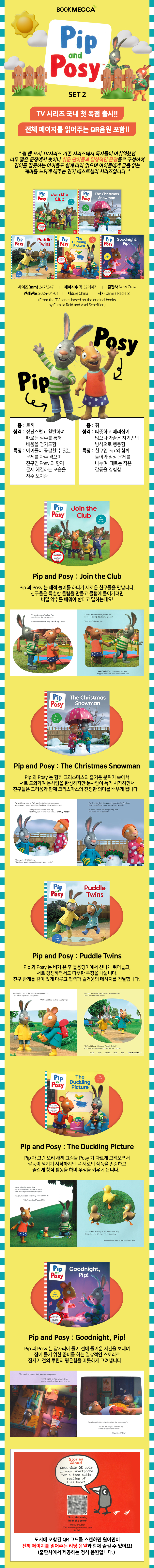 | 도서명 | TV 시리즈 버전 Pip and Posy 5 Books SET 2 (QR음원 포함) - 페이퍼북 | ||