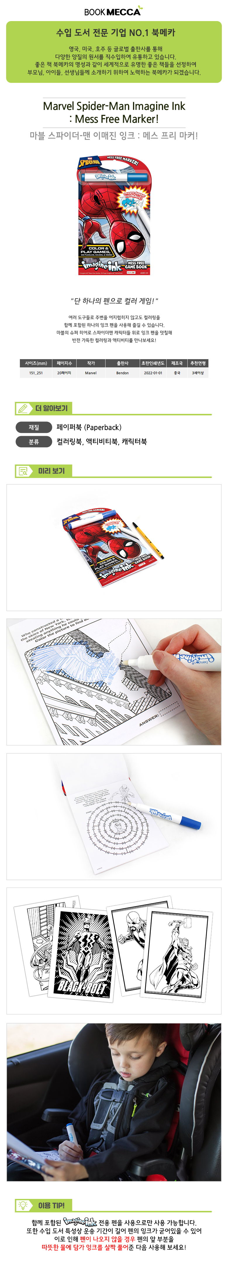 | 도서명 | Marvel Spider-Man Imagine Ink : Mess Free Marker! - 컬러링북/페이퍼북 | ||