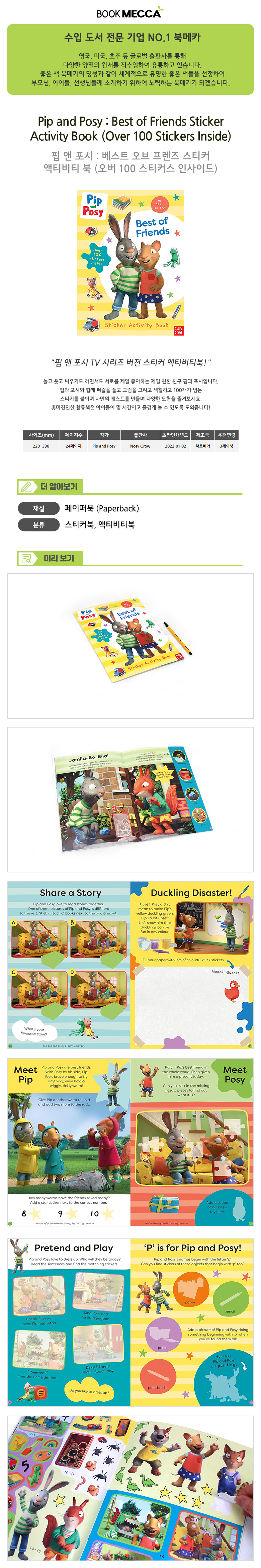 | 도서명 | Pip and Posy : Best of Friends Sticker Activity Book (Over 100 Stickers Inside) - 스티커 액티비티북/페이퍼북 | ||