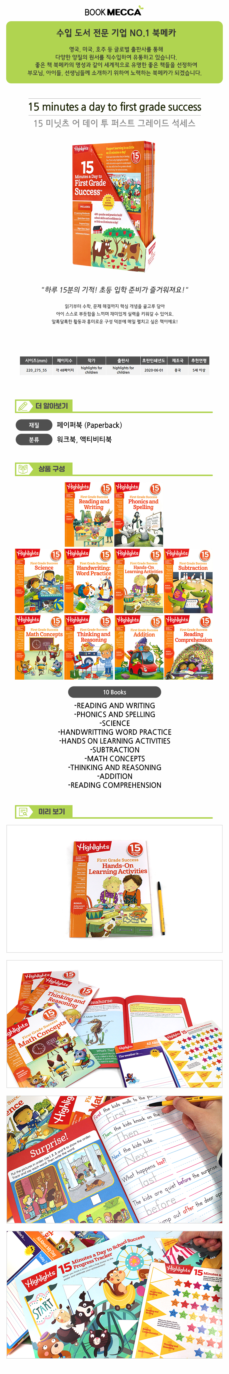 | 도서명 | Hightlights 15 minutes a day to first grade success - 페이퍼북 | ||
