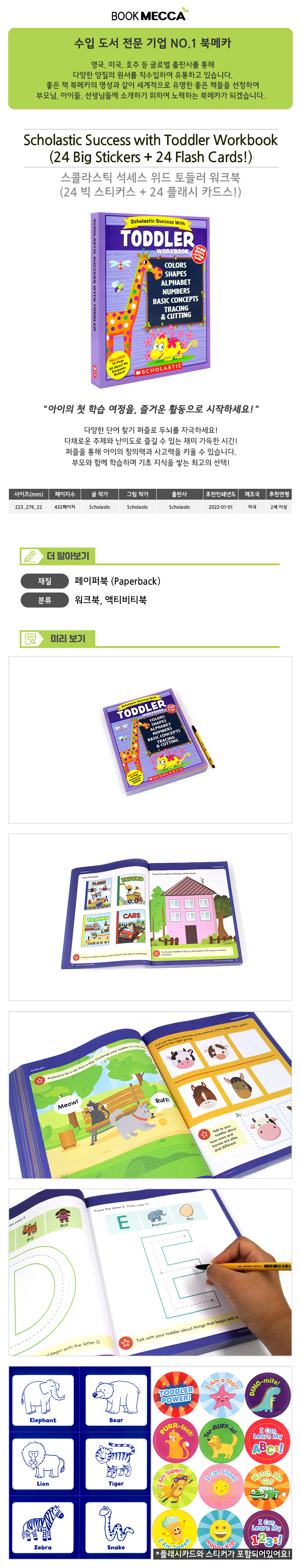 | 도서명 | 스콜라스틱 Success with Toddler Workbook (24 Big Stickers + 24 Flash Cards!) - 워크북/페이퍼북 | ||
