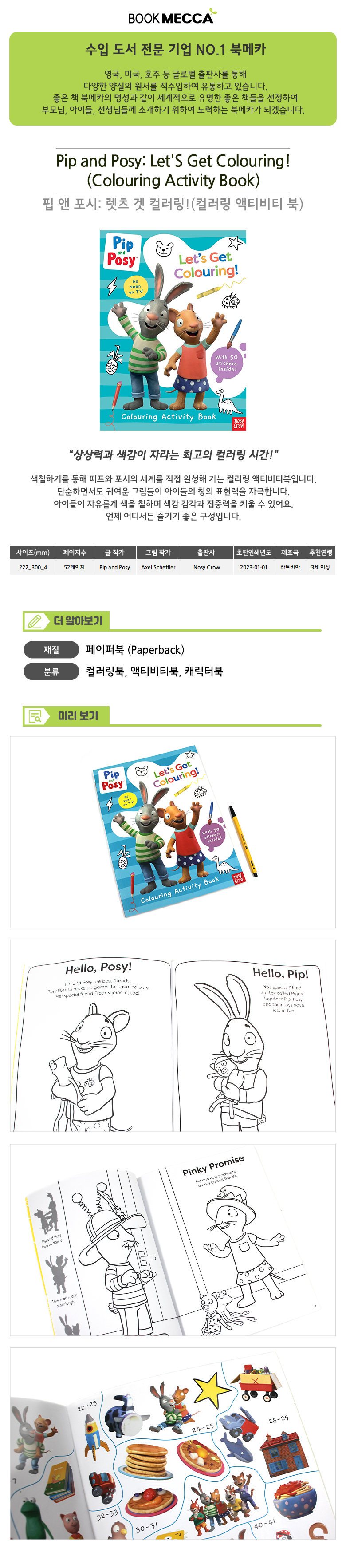 | 도서명 | Pip and Posy : Let'S Get Colouring! (Colouring Activity Book) - 컬러링북/페이퍼북 | ||