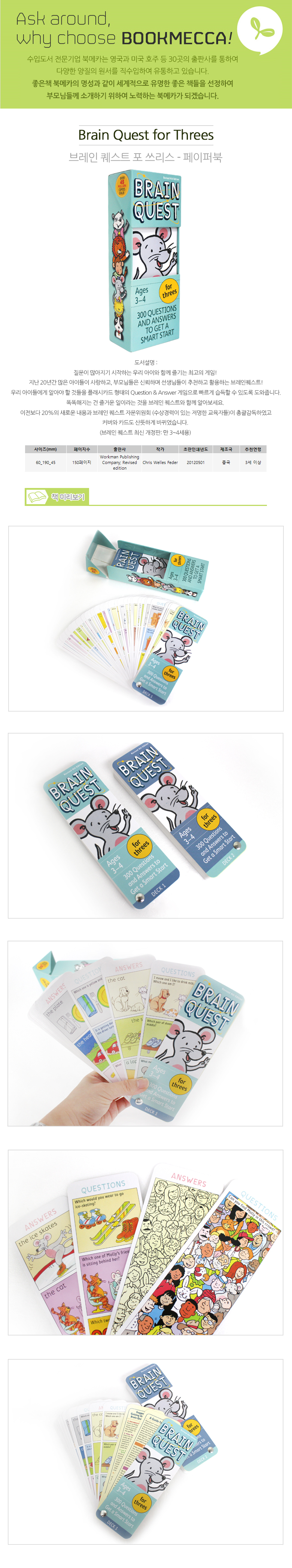 | 도서명 | Brain Quest for Threes - 페이퍼북 | 저자, 출판사 | Chris Welles Feder ,Workman Publishing Company; Revised edition |