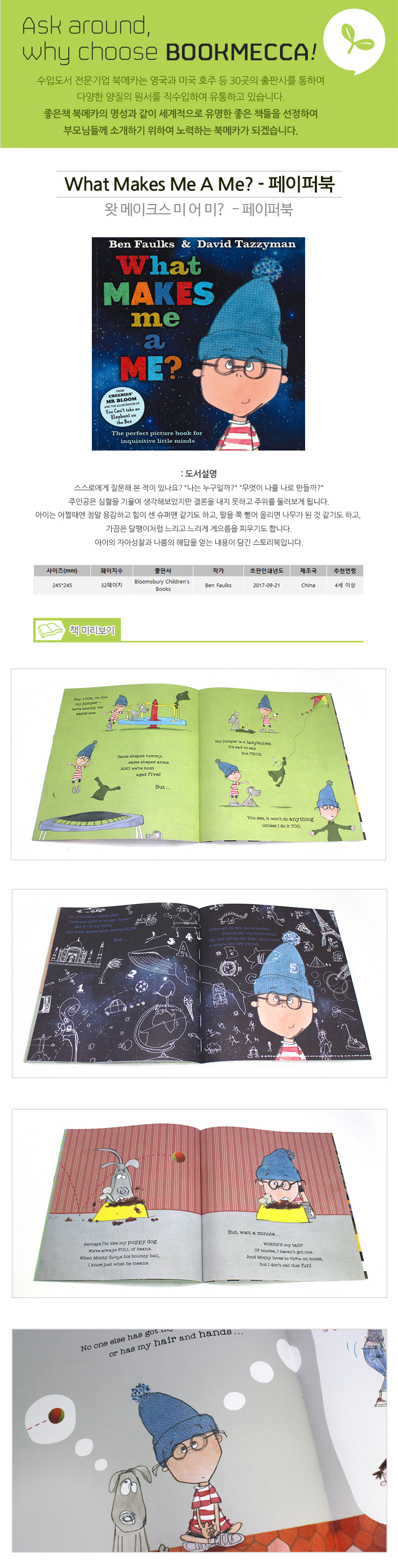| 도서명 | What Makes Me a Me - 페이퍼북 | 저자, 출판사 | Ben Faulks,Bloomsbury Childrens Books |