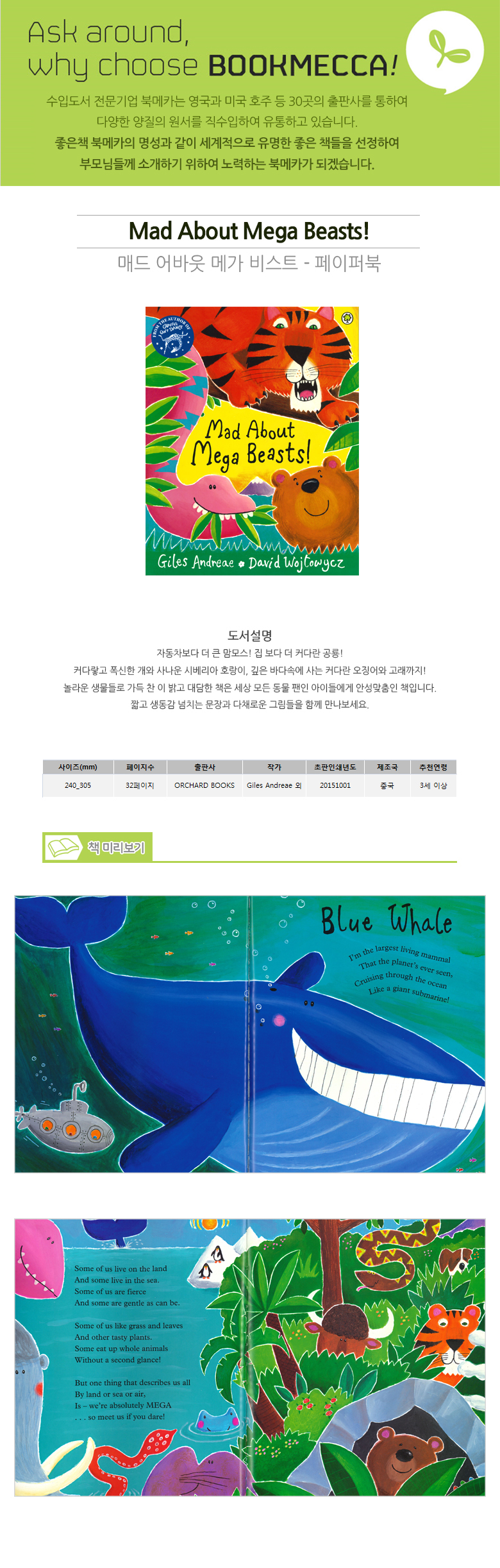 | 도서명 | Mad About Mega Beasts!-페이퍼북 | 저자, 출판사 | Giles Andreae,Orchard Books |